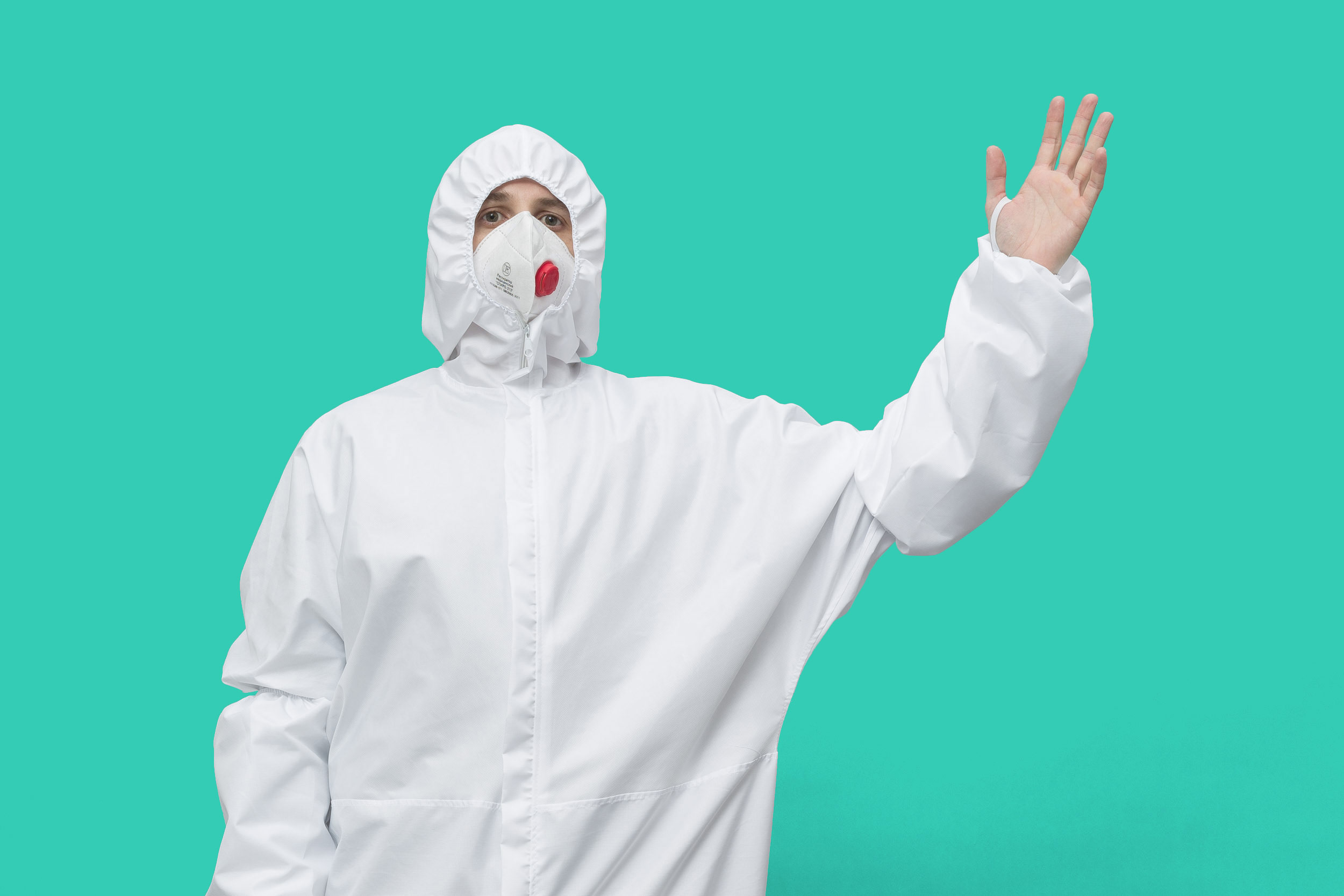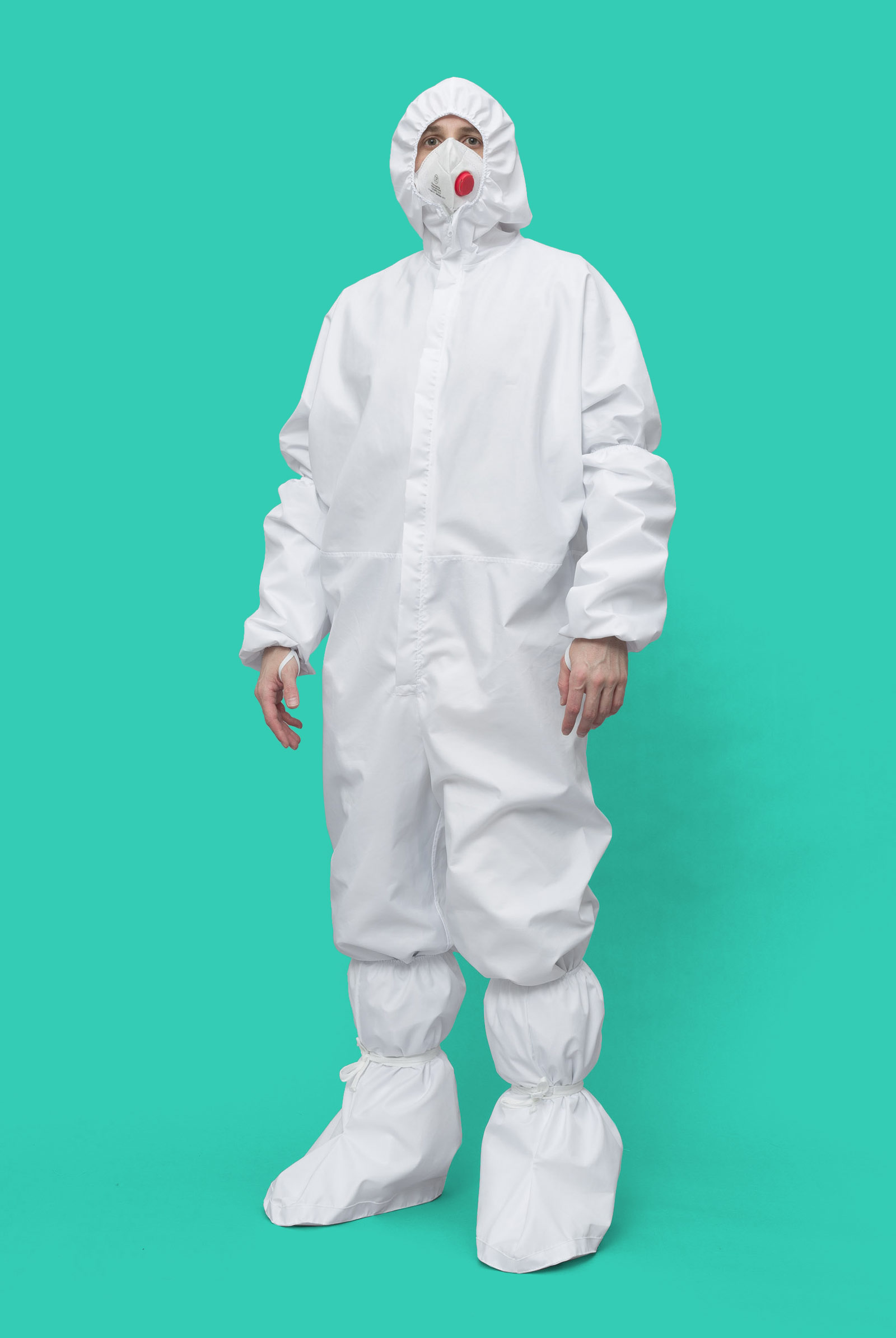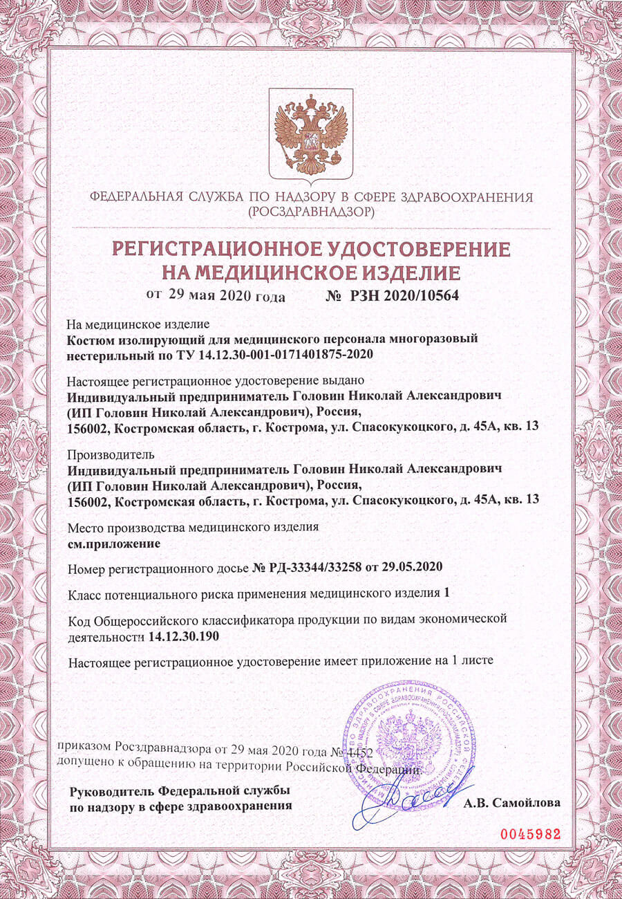Костюм из ткани, рекомендованной ФБУН НИИ Дезинфектологии Роспотребнадзора для многоразовой одежды для работников, имеющих риски инфицирования COVID-19.